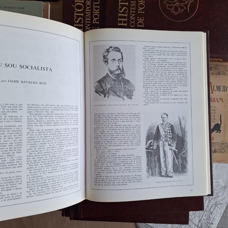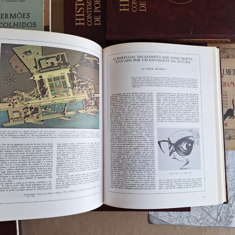 Detalhes: Colaboração de Aniceto Afonso, Eduarda Dionísio, Luís Reis Torgal entre outros. 7 Volumes: Monarquia Constitucional I e II; Primeira República I e II; Ditadura (o Estado Novo) I e II e Vinte e cinco de Abril. Encadernação editorial em ótimas condições, com gravação a seco e a dourado na pasta anterior e lombada e gravação a seco na pasta posterior. Profusamente ilustrado. Dimensões aprox. de cada volume: 30cmX23cm.